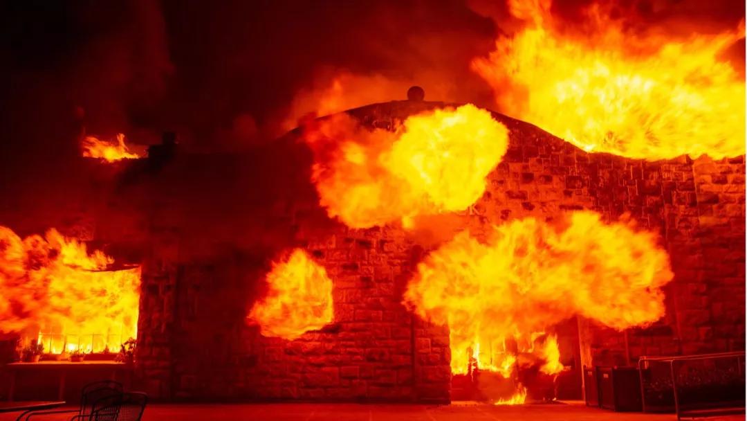 這張圖片不是在拍好萊塢大片,而是加州的Soda Rock 酒莊在本次加州大火中被吞噬的景象。
