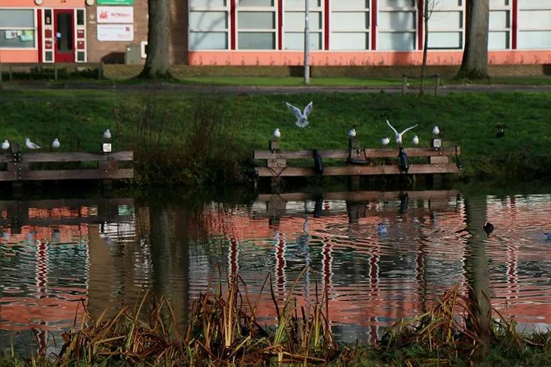 當環境景物的色彩比較鮮艷、豐富時,你好可以嘗試專注于拍攝水面波紋本身,斑駁的色彩與波紋結合會形成漂亮的抽象圖案: