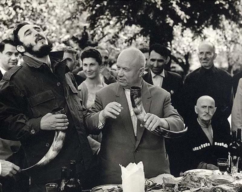 1962年古巴導彈危機,翌年古巴領導人卡斯特羅訪問蘇聯,時任蘇聯領導人赫魯曉夫在格魯吉亞用獸角杯招待客人。