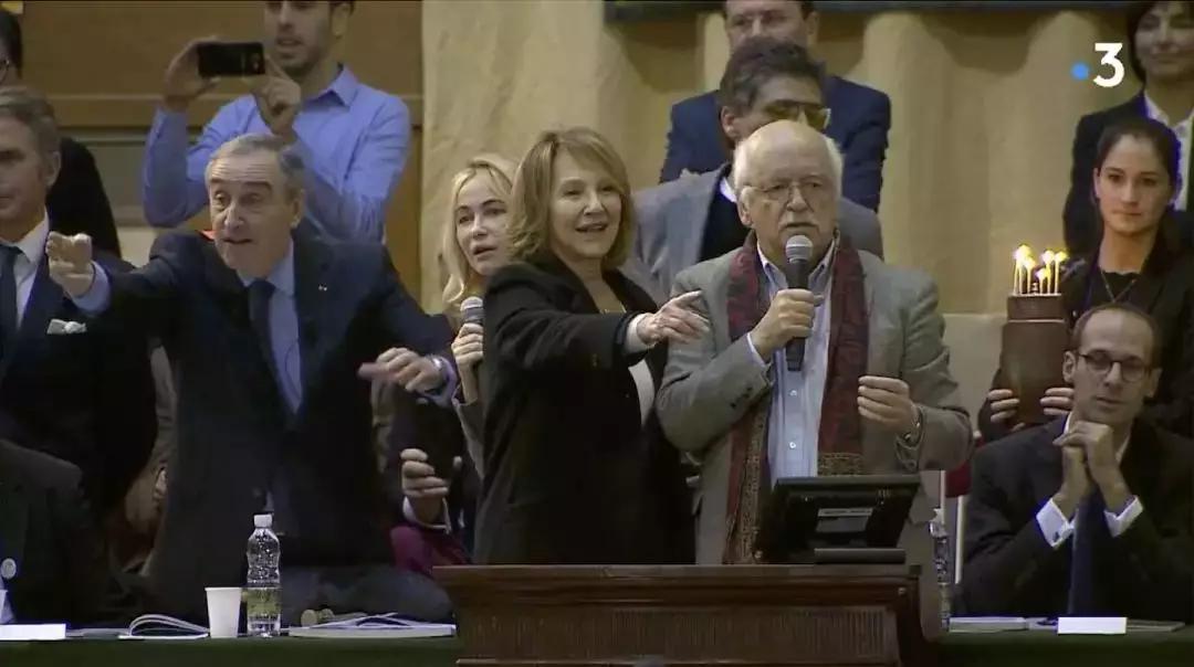 ▲ 2018年總統(tǒng)桶拍賣。拍賣嘉賓:Erik Orsenna(男)和Natalie Baye(女)