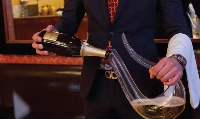 ▲ 侍酒師正在使用七弦琴醒酒器