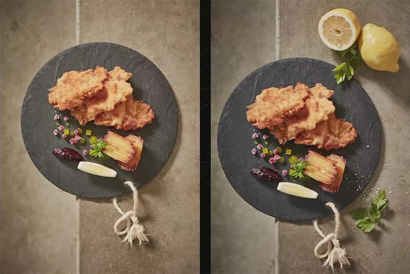 誠(chéng)然,美食攝影主要的目的是拍出食物的美味,食物本身的“賣相”是最重要的,但使用一些恰當(dāng)?shù)男〉谰哌M(jìn)行“裝飾”,卻可以起到畫龍點(diǎn)睛的效果。