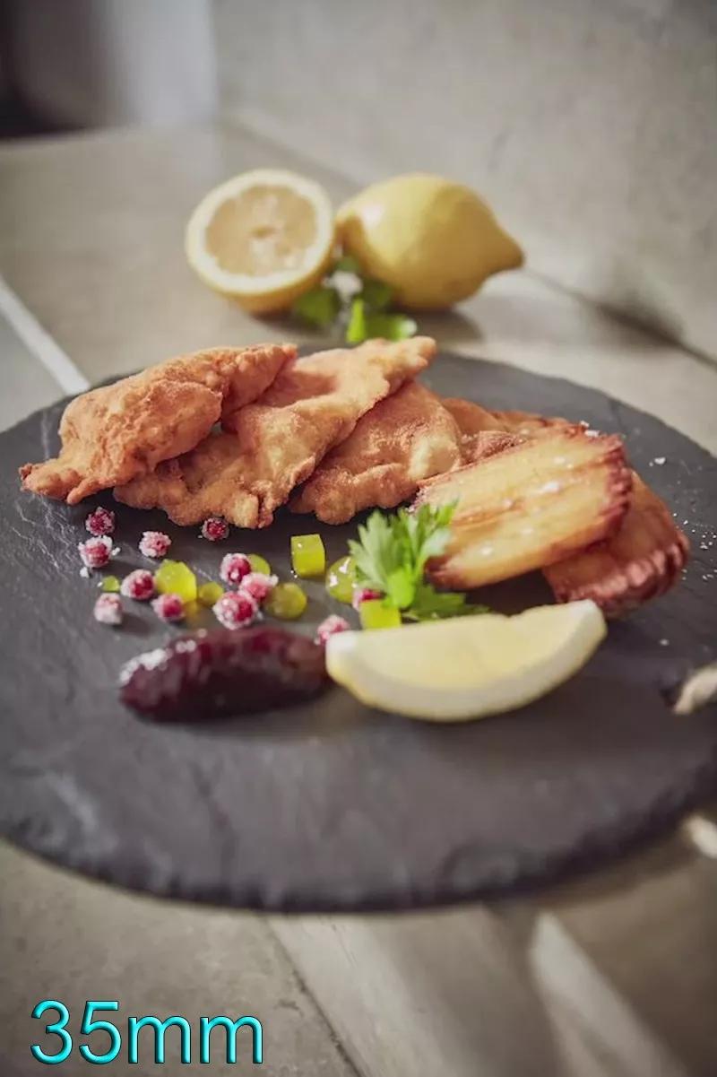 首先 35mm 廣角。廣角鏡頭的最顯著特定是“視野開闊”——但對(duì)于拍攝美食這一題材來說,這一點(diǎn)意義不大;除去這一方面,廣角鏡頭還存在畸變失真嚴(yán)重,焦外虛化能力較弱的特點(diǎn)。