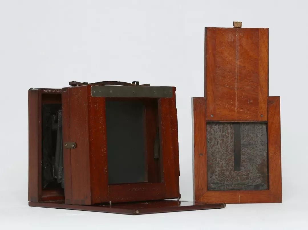 盡管濕版照相機有多種式樣,但在 19 世紀濕版攝影盛行時期,木制滑箱式和木制皮腔式仍是當時最為主要的機種。筆者有幸收藏了兩臺這類照相機,一臺是謝瓦利埃式的尾板式滑箱照相機(可以拍攝濕版),一臺是皮腔式濕版照相機。