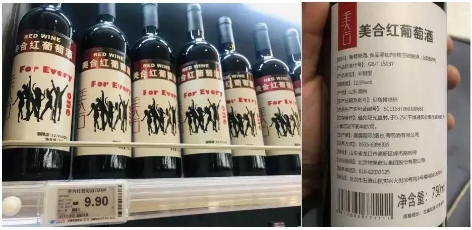 第一個新聞是葡萄酒自媒體“微釀”發布的一篇題為《9.9元葡萄酒驚現物美旗下超市!背標顯示:產地煙臺+總經銷》的文章,事情總結起來就是:物美集團旗下的北京new mart品超市出售一款名為“美合”的葡萄酒,售價只有9.9元,產自中國煙臺。