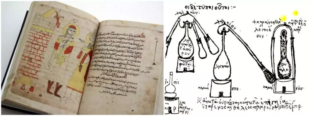 ▲ Zosimos of Panopolis,Theosebeia和蒸餾爐(左)