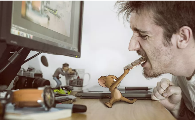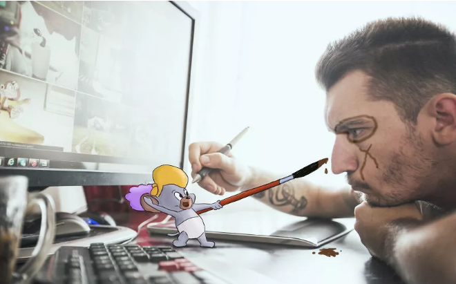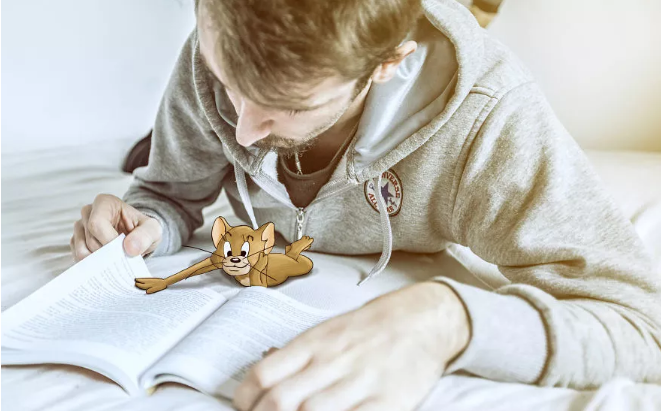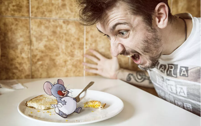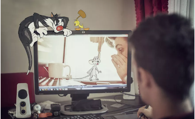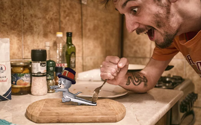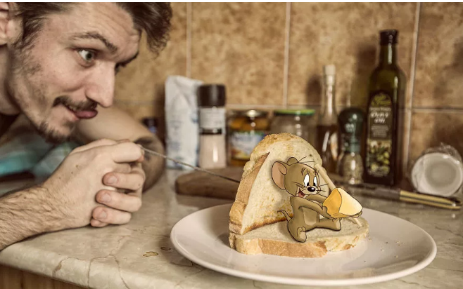 在他的這組創作中,波爾成功化身“戲精”,讓自己跟湯姆貓和老鼠杰瑞、兔八哥等一些動畫角色成了好朋友。