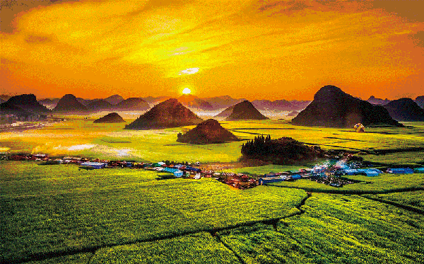 當日行程:今天起個早,領隊會帶領大家攀登青龍山去觀賞壯觀的日出和普者黑全景。沿彎彎曲曲的石梯拾級而上,當山峰的最高處漸露白光,旭日逐漸染紅云層,金色播撒在普者黑整片喀斯特峰林之上,孤峰、湖泊、溶洞,光影交錯猶如梵高筆下的油彩,蔚為壯觀;