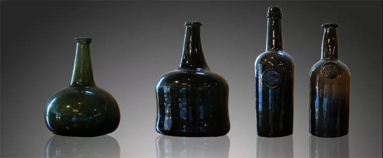當時的暗色系酒瓶實屬無奈。17世紀人類技術水平難以剔除玻璃原材料沙子里的雜質,導致當時的所有酒瓶都呈現暗色系。沙子越不純,燒出來的酒瓶顏色就越深。