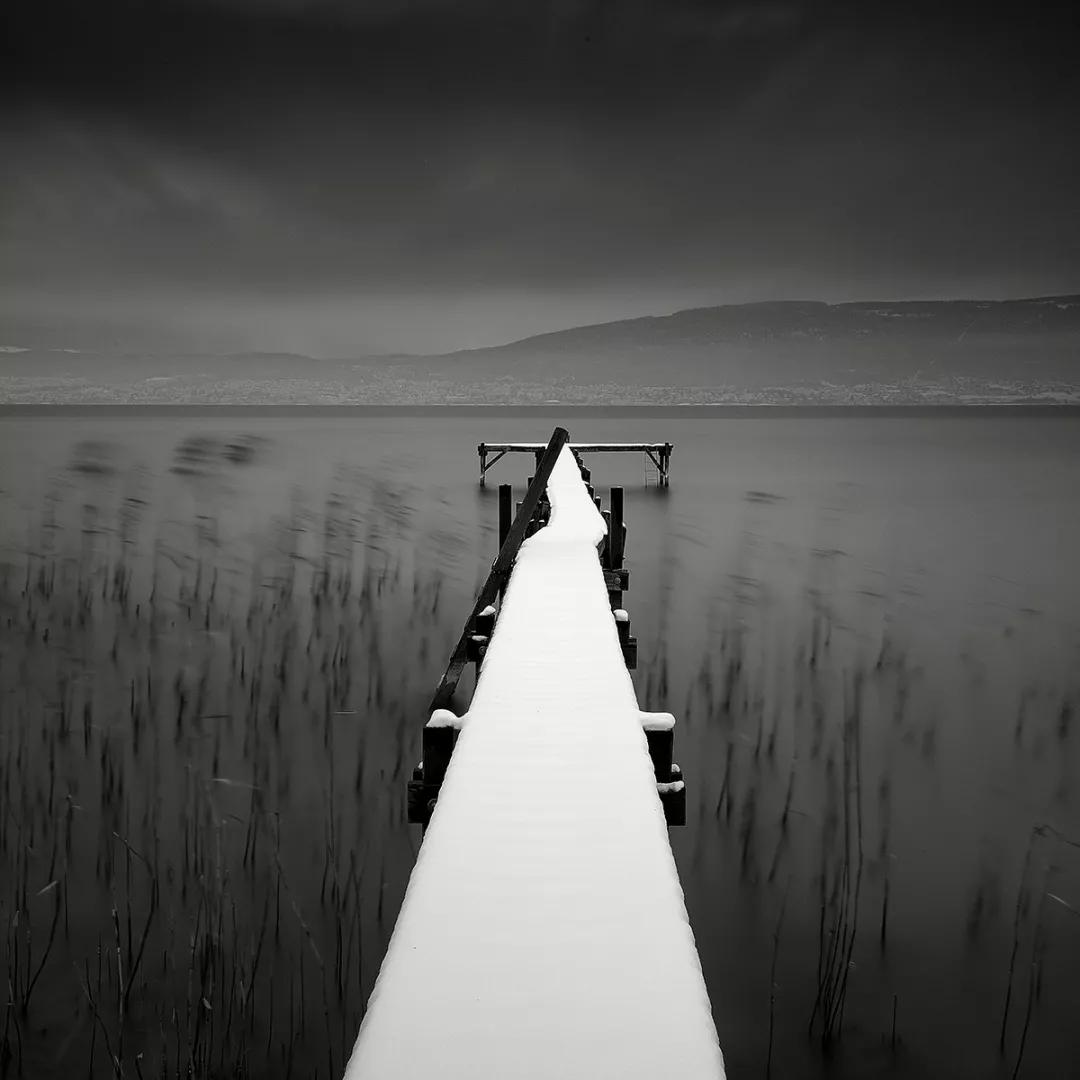 無論是拍攝點綴著零星樹叢的遠景,白雪覆蓋的碼頭,還是陷入混沌狀態(tài)的建筑,佩萊格里尼運用的長曝光拍攝手法都將這一處處風(fēng)景凝練成“固態(tài)”,也給我們的心靈帶來一種美與靜的享受。