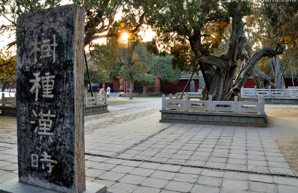 時光飛逝,轉眼到了民國年間,軍閥孫良誠的部隊也駐扎在岱廟里,其中一個小士兵聽說了這個故事后,也要在旁邊的連理柏上試上一試,結果還沒來得及行動呢,風聲傳出去被當時的道長尚士廉攔住,報告給了他的長官。偏巧這位長官是一位敬神之人,命人把小士兵拖來用皮鞭抽了一頓(屬下冒犯神靈這還了得,闖禍的小士兵自然是逃躲不了皮肉之苦),小士兵懷恨在心,等到晚上月黑風高無人之際,他把他的棉被沾滿煤油塞到連理柏中的一株,一把火燒毀了其中一株,當年乾隆皇帝來到泰山時看到這株柏樹雙干而立,古柏參天,被它不屈的精神折服深深的印在腦海里,乾隆皇帝回到皇宮后憑借印象把它描繪了出來,乾隆皇帝先后來泰山總共留下146首詩唯獨留下這一副畫,我們現在看到正中的這個《御制漢柏圖贊》碑就是當年乾隆皇帝憑借記憶畫下的畫,不幸果然被乾隆爺言中,現在的連理柏已經是一生一死,生離死別,漢柏無言,但我們相信他們會把生死相隨的承諾一直堅守到永遠。