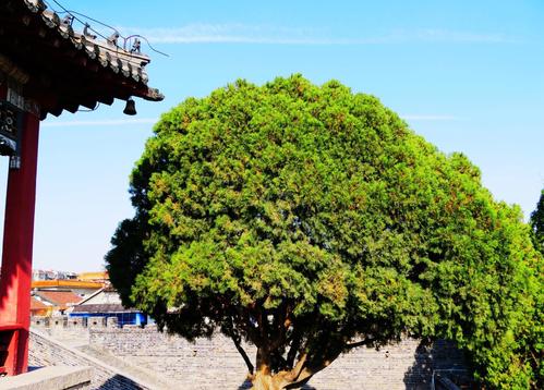 穿過正陽門,現在我們來到的是岱廟漢柏院,在這里我們會看到樹齡2000多年的5株漢柏,公元前110年,雄才大略的漢武帝封禪泰山,為了表達對泰山神敬仰之情他帶領文武百官種下2000株柏樹,經過兩千多年的歲月洗禮,留存的柏樹依然煥發著勃然生機。