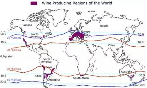 德國葡萄酒產區的緯度范圍大致在48.5-51°N之間,幾乎是在世界葡萄酒種植區(南北緯30-50°)的最北限來回試探。