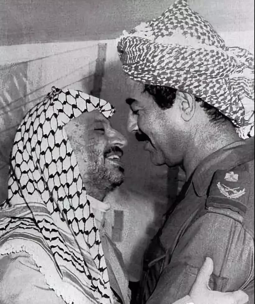 1980年,薩達(dá)姆與阿拉法特。