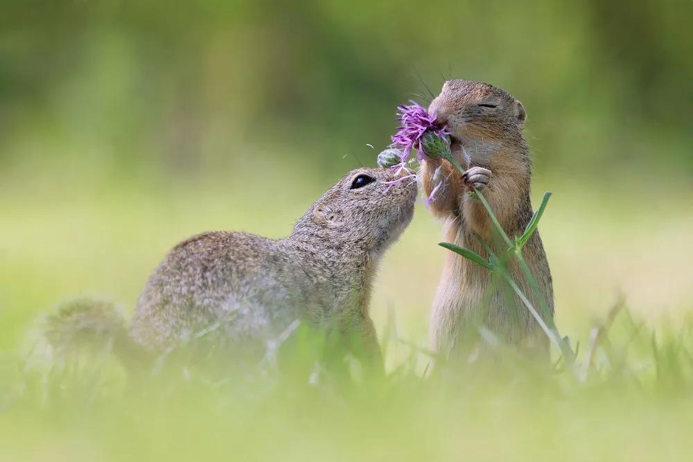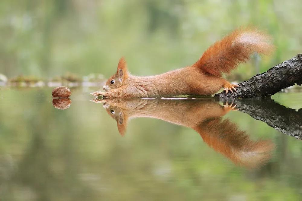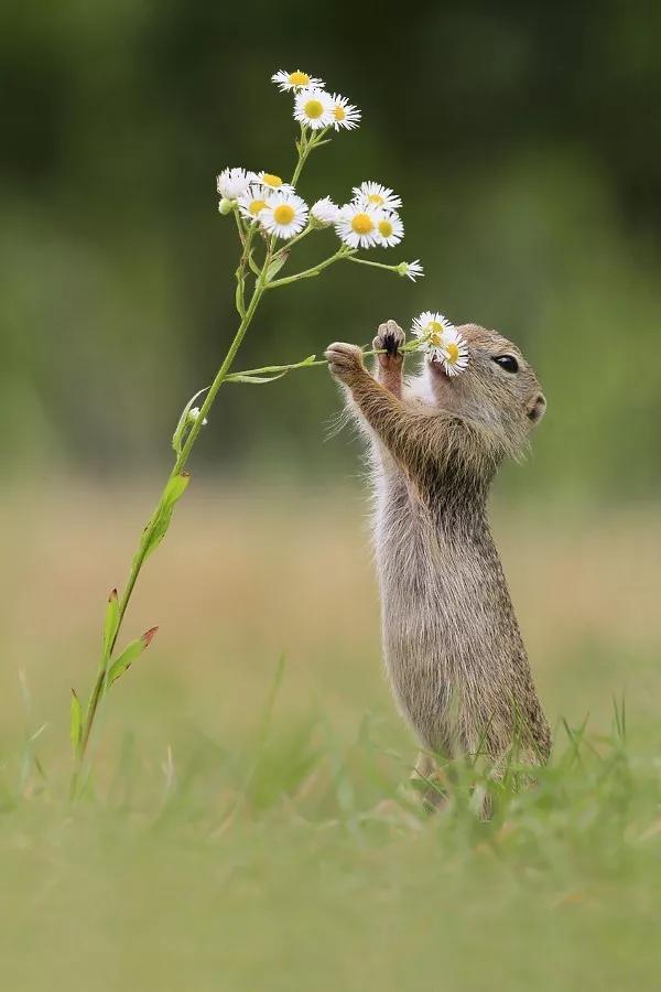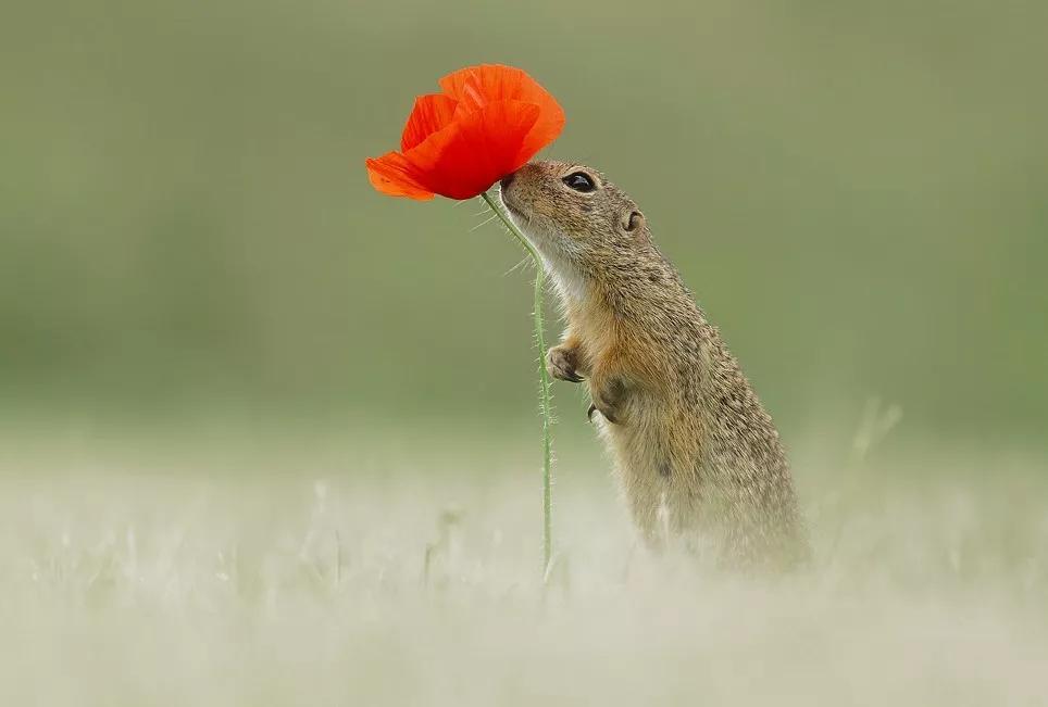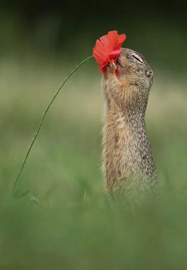 于是我們有幸見到了小松鼠細嗅花香的一面、紅狐貍傻乎乎憨態可掬的笑容、咬著堅果不放松的紅松鼠那矯健的身姿……