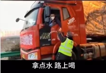 車行幾米,交警遞過去一大包水:師傅,拿點水,路上喝。