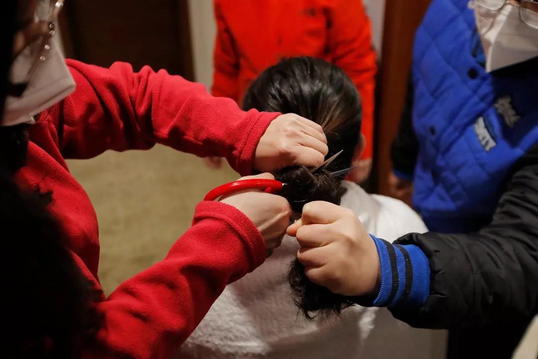 宣武醫院的護士在同事的幫助下剪掉了自己的長發。