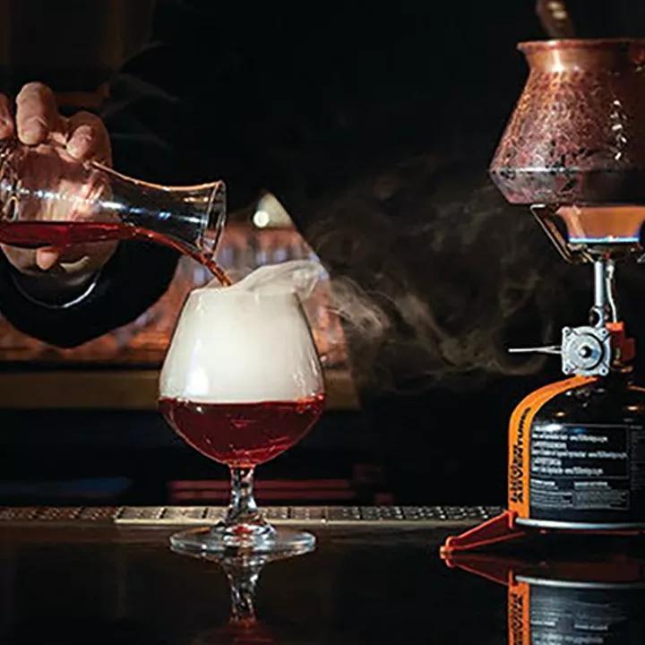 “Chinato是味美思的絕佳替代品,具有草本的復(fù)雜性,干橙皮烈酒則會更加釋放它的味道”,F(xiàn)ilkins說,“當(dāng)酒呈上來的時候,煙霧增加了驚喜的氛圍,巧克力和豆蔻則帶來豐富的芳香和的溫暖的烘焙口感。”