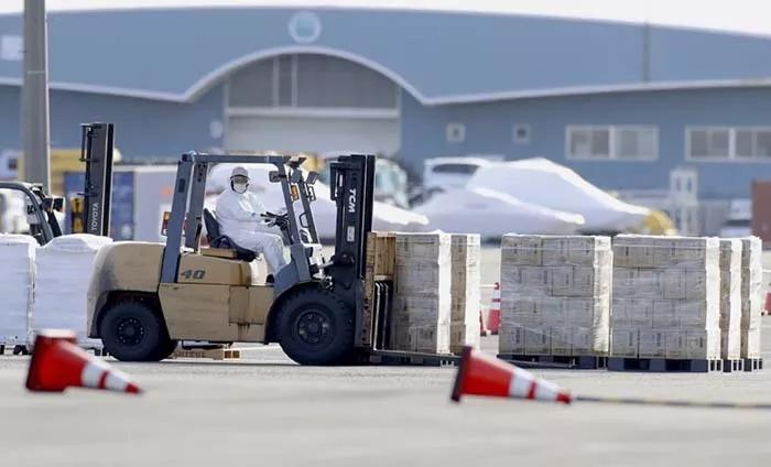 從乘客在船上等待通知到被通知正式隔離的時間里,當(dāng)?shù)卣畬⒀杆賹⒏黝惐U衔镔Y運(yùn)到船上,并逐步加大病毒檢疫和防控工作力度。