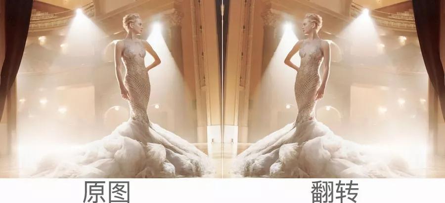 人物面部朝右,視覺情感傾向是積極昂揚的,與人物的整體姿態極為貼合。我們將其翻轉,會感覺到強烈的不和諧感。