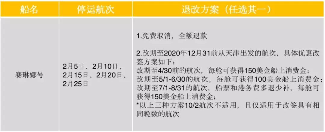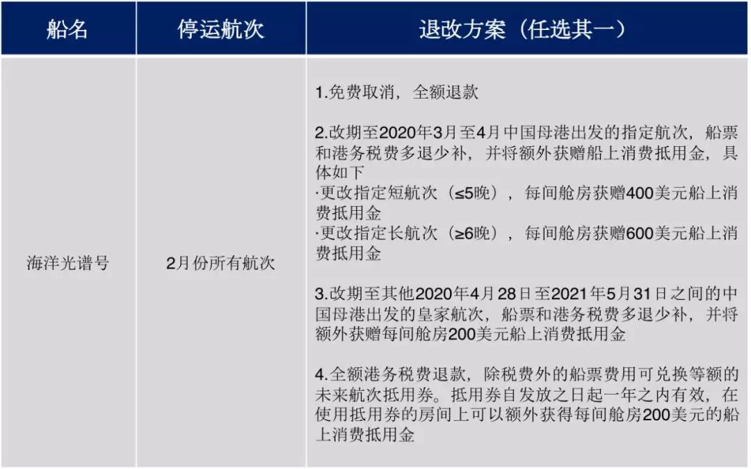 各郵輪公司在停運(yùn)的大形勢(shì)下,給出的退改方案主要為兩類,全額退款和航次改期,改期方案中大部分都給予了船上消費(fèi)金作為對(duì)預(yù)訂乘客的補(bǔ)償,可以感受到一定的誠(chéng)意。