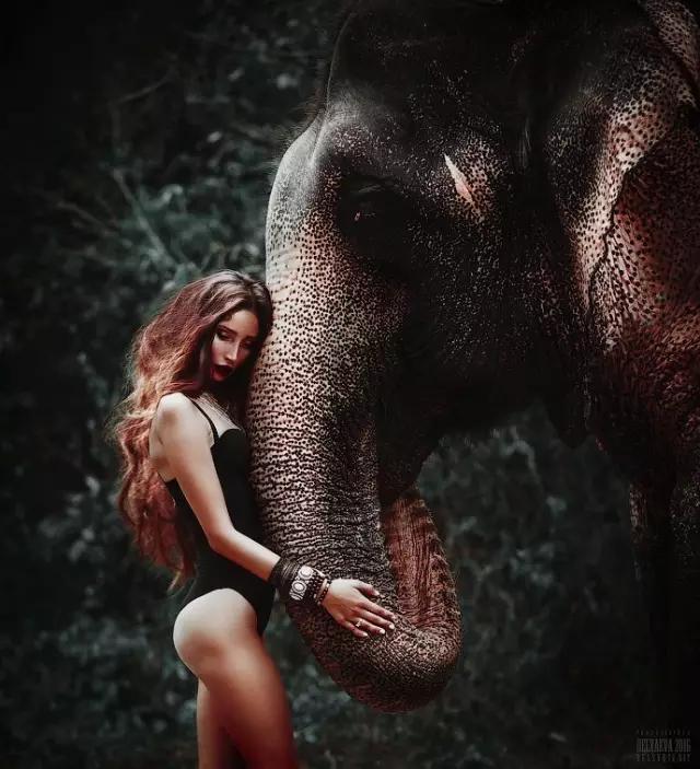 有獨特的配角,當然要毫不猶豫地使用。當然,必須考慮到攝影表現的方式,觀察下圖,盡管大象是核心視覺元素,但攝影師依然盡力動用構圖和色彩上的手段,來保證視覺上的美感,同時保證人物在整個畫面中的中心感
