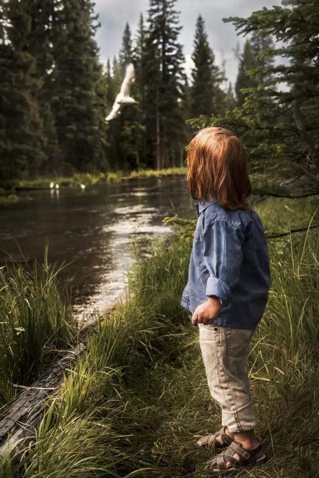 尋找自然景物之美,是攝影師觀察力的體現。這張作品充分觀察到了前景水面和中景水面的不同光效,輔助以構圖上的平衡感,獲得極佳的視覺效果。人物讓畫面活躍起來。