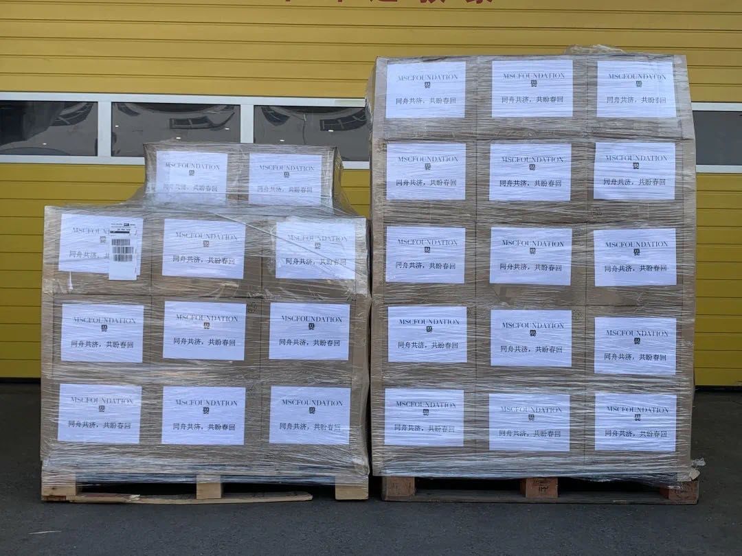 2月23日,MSC 地中海郵輪基金會(huì)采購(gòu)的首批醫(yī)療物資100,000只歐標(biāo)醫(yī)用口罩抵達(dá)北京,交由中國(guó)交通運(yùn)輸部馳援湖北。