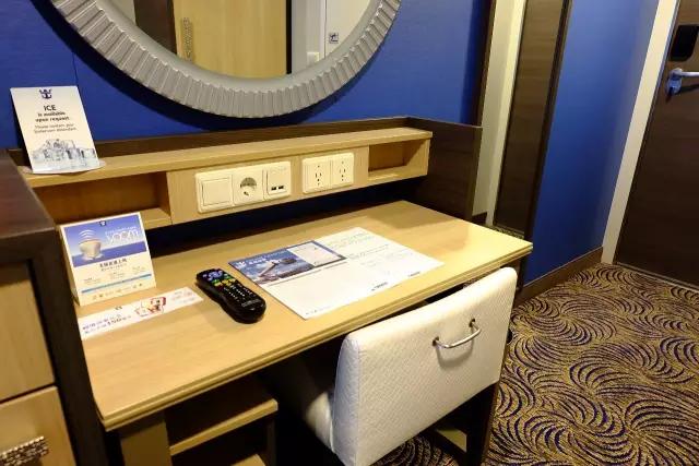 游輪上的插座是美標的,兩個插孔的插座可直接使用,三個插孔的插座需要轉換器,光譜號的艙房內上還配有兩個UBS充電插座喲~