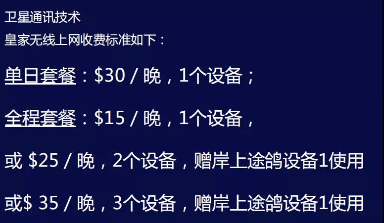 在沒有信號的公海上,可以隨時用艙房中的衛星電話直撥電話回家,每分鐘7美金左右,費用會直接列入房卡賬戶中。