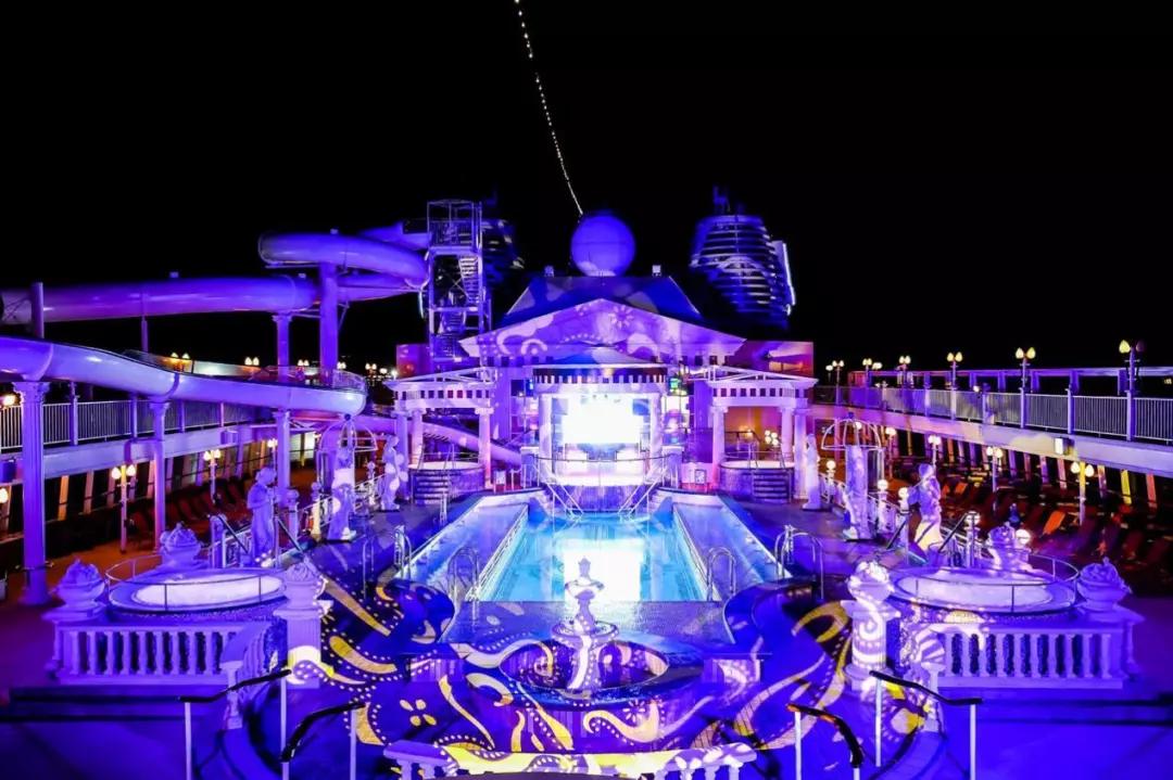 甲板上,有高空飛索表演,有海上煙花匯演,你可以在各式各樣的休閑、娛樂、美食、購物場景中獲得無數(shù)與眾不同的美好體驗,當然,你也可以什么都不體驗,只是吹著海風看看世界。