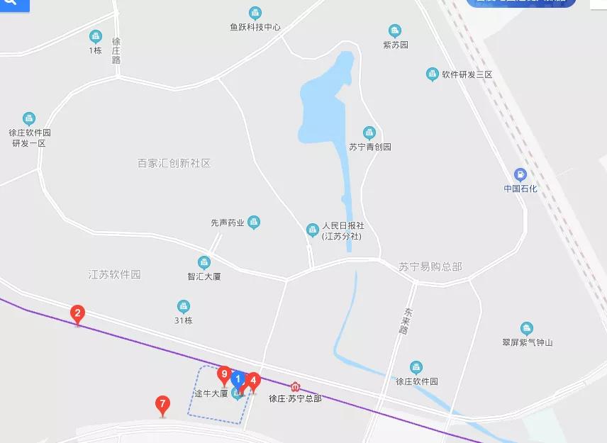 南京的途??偛浚徧K寧總部,以及蘇寧易購總部和蘇寧青創園。
