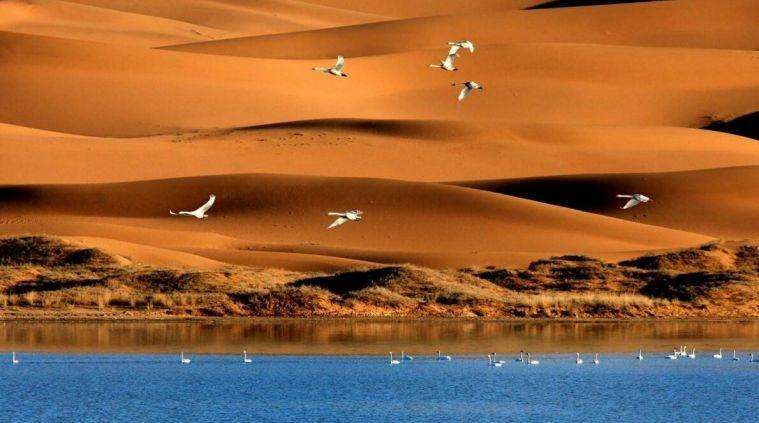 游覽完西夏王陵赴中國國第四大沙漠的騰格里沙漠。晚上赴阿拉善盟休息。