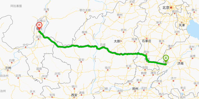 聊城出發,全程約十四小時,途經東呂高速、青銀高速,每2-3在服務區調整休息。
