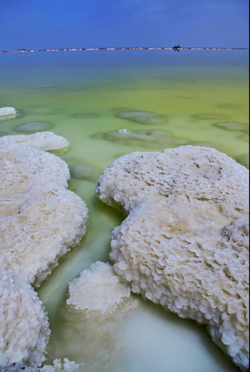 一簇簇地立于鹽湖中