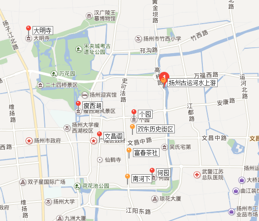 南門:乘坐4、5、6、17、23晚、27、29、37、51夜、62、103、旅游觀光巴士、旅游專線、鎮揚城際等公交車在瘦西湖站下車。