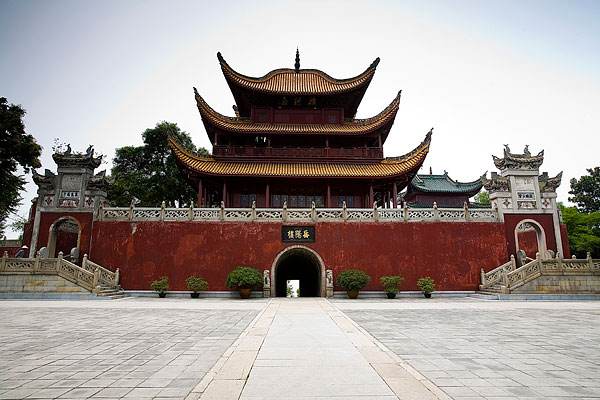 岳陽樓位于岳陽市西門城頭、緊靠洞庭湖畔,與江西南昌的滕王閣、湖北武漢的黃鶴樓并稱為江南三大名樓。“先天下之憂而憂,后天下之樂而樂”,北宋范仲淹的名作《岳陽樓記》,讓這座洞庭湖畔的名樓,成為一個家喻戶曉的地方。岳陽樓的樓頂形式非常獨特,采用了古代將軍頭盔式的頂式結構,全樓沒有用一根鐵釘和一道橫梁,在我國古代建筑史上也是獨一無二的。登上三層高樓頂,憑欄眺望,眼前是煙波浩渺的八百里洞庭湖水,耳邊不由自主的回蕩起那些千古佳句。