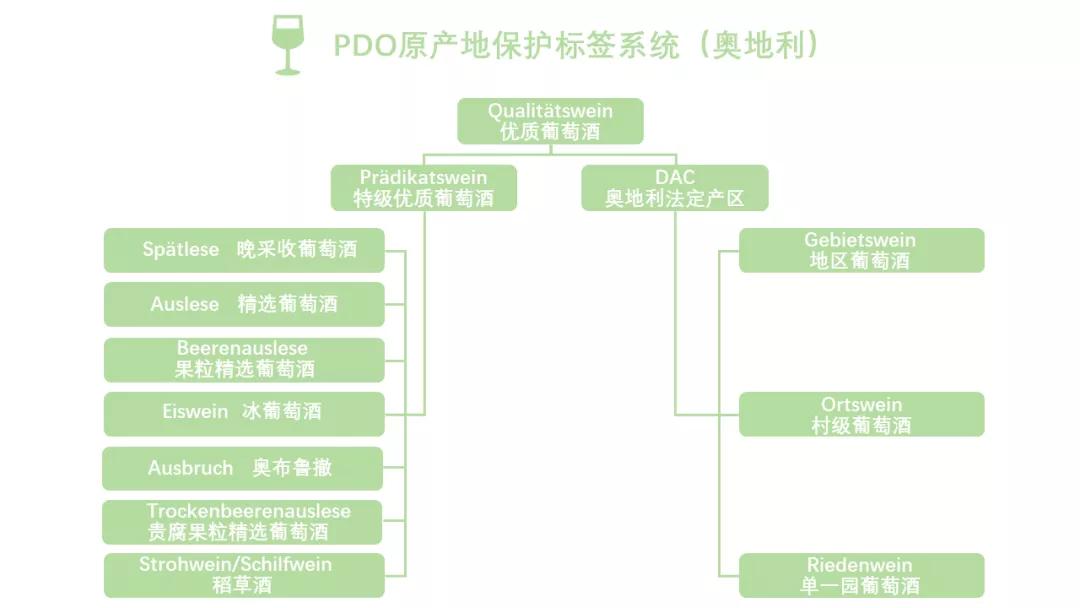 目前全奧地利4個大區下的17個子產區均獲準釀造PDO葡萄酒。