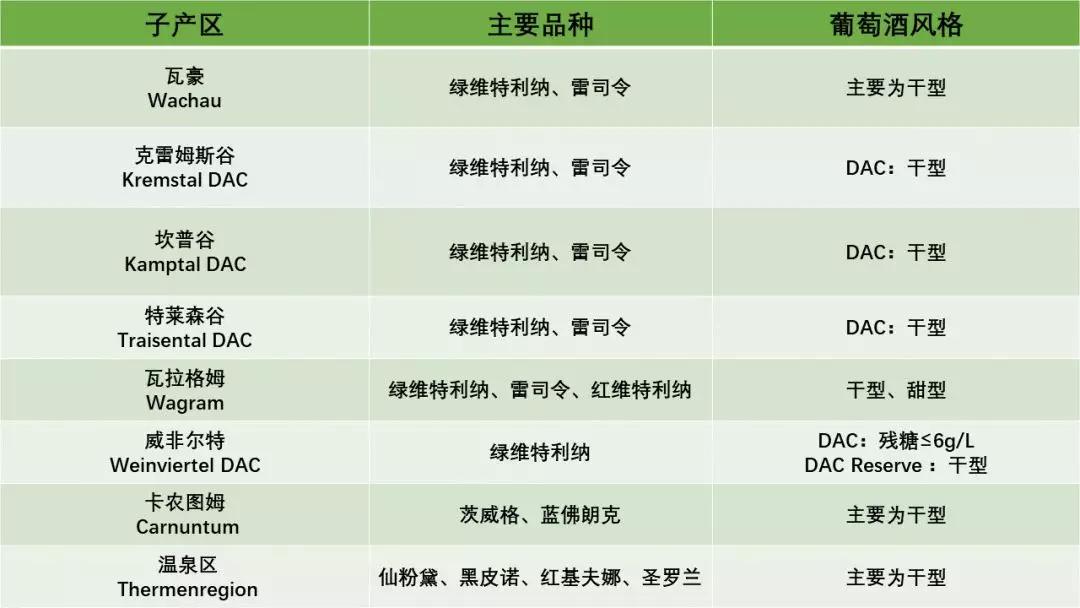 奧地利葡萄酒產區劃分為4個大區,共17個子產區。(西部零散葡萄園本文不做介紹)