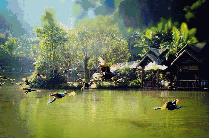 【原始森林公園】:原天然的大氧吧,具有"熱帶溝谷雨林"、"以孔雀文化為主的野生動物展示"、"以哈尼族-愛尼人為主的民俗風情展示"三大主題。