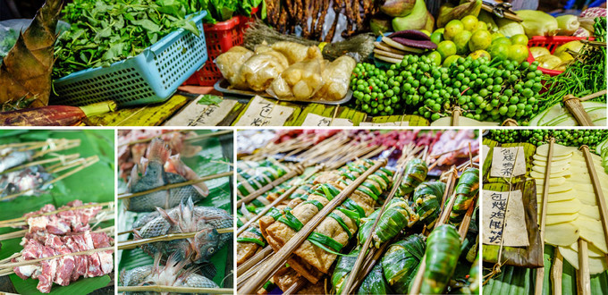 例如香茅草烤魚、考五花肉、烤雞、菠蘿飯、野菜湯、風味煮米干、喃咪拼盤都非常值得一試。特具風味的野菜,不僅美味,四季皆不同。你要是選擇雨季來版納,不僅有山茅野菜、筍類,還有野生菌類和讓你勇于挑戰的蟲類,豐富的程度絕對讓你咂舌。