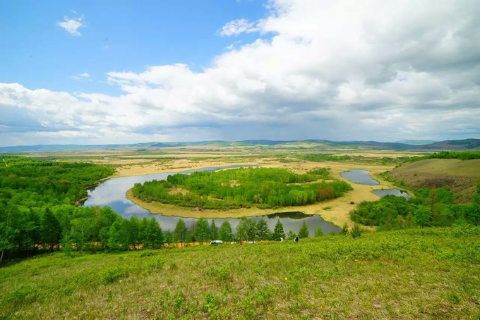 滾滾流淌的黑龍江水沿著內(nèi)外興安嶺交界處的低谷一路東流,在一個(gè)叫紅旗嶺的地方突然形成一個(gè)完美的Ω形江灣,這個(gè)長(zhǎng)度達(dá)30公里的神奇大灣就是黑龍江第一灣。站在山頂可以俯瞰這里的全景,浩浩蕩蕩,非常的壯觀。