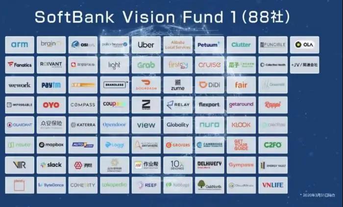 2019年財年,軟銀的投資基金整體虧損1.9萬億日元。軟銀在2017年成立了規模達1000億美元的愿景基金一期,投資組合包括了ARM、Uber、滴滴出行、WeWork等公司。截至目前,已投資了88家公司,總價值為696億美元。
