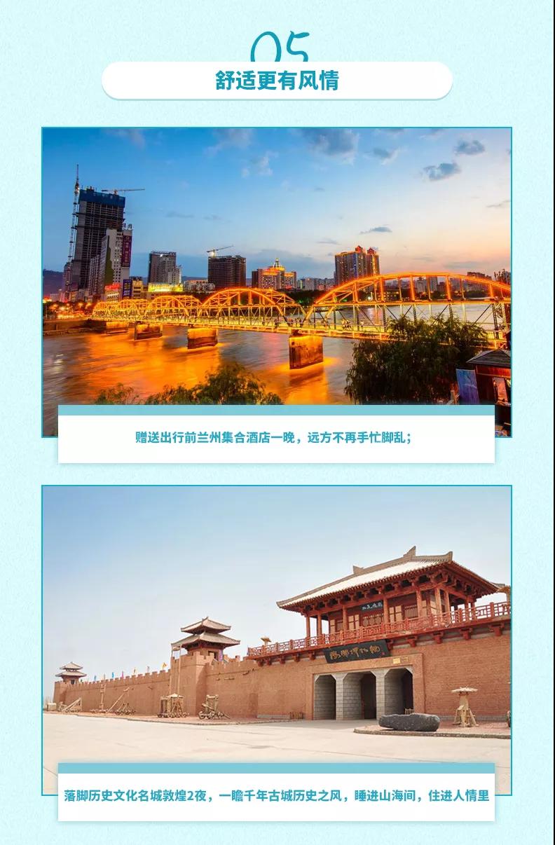 7、贈送:贈送特色敦煌沙漠BBQ;贈送貼心禮包旅游三寶、魔術頭巾;贈送蘭州市區接機/接火車服務,23點后由于運管規定不能接機/接站,敬請諒解。(贈送項目不用費用不退)