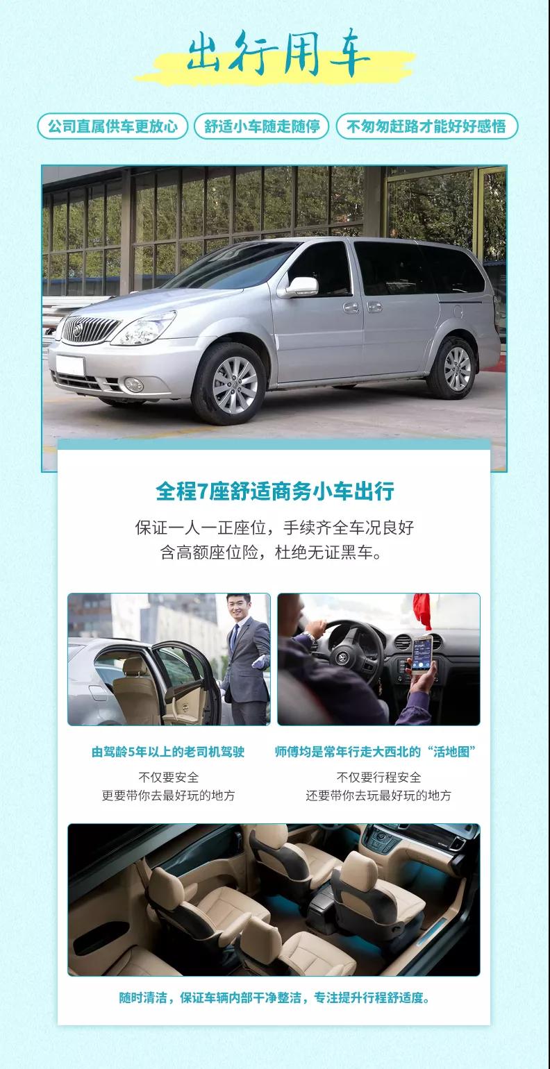 2、交通:私享VIP4-6人小團,全程舒適7座商務車出行,保證一人一正座位,車型大小根據實際人數安排,且由駕駛經驗豐富的司機為您的出行保駕護航,報價包含車費、油費、停車費、維修費及司機勞務費。