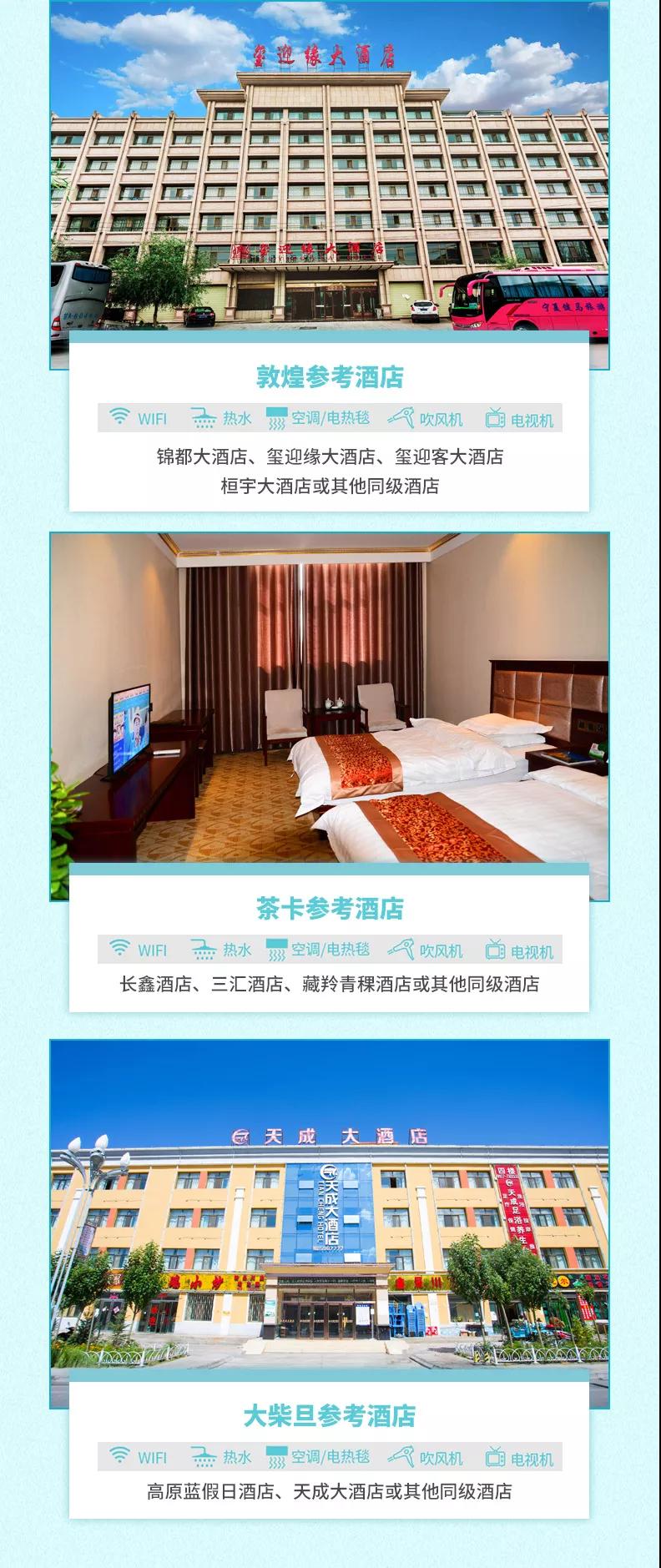 茶卡:長鑫酒店、三匯酒店、藏羚青稞酒店或其他同級酒店