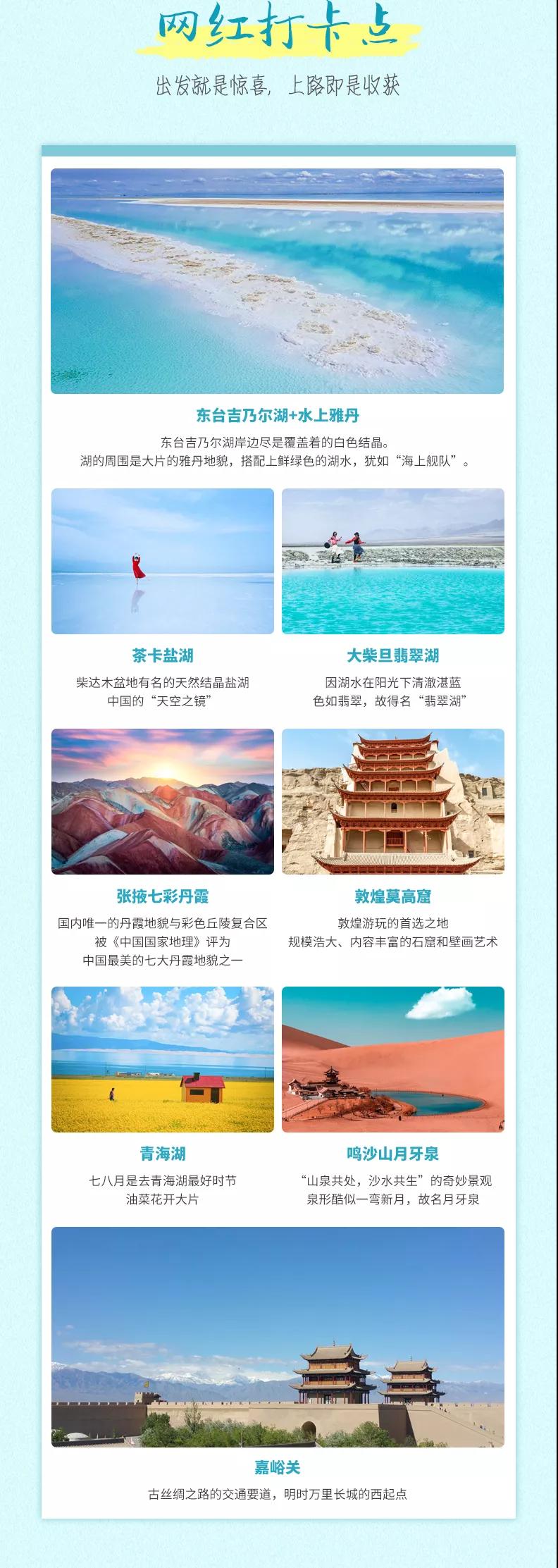 溫馨提示:西北地區天氣干燥,旅途的過程中請大家多喝水,注意防曬;敦煌《又見敦煌》演出,旅游淡季298元/人,旺季368元/人起;果木烤全羊費用根據羊的大小決定,由參與活動的游客均攤,一般10人一桌,人均消費160元左右。