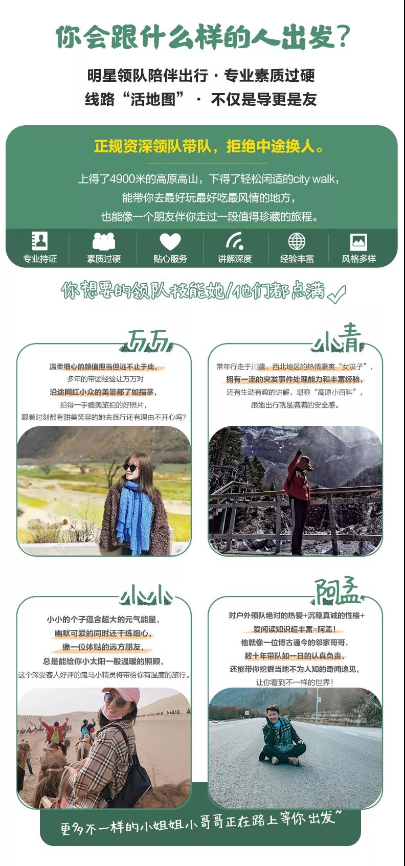4、如途中遇不可抗因素(如高原反應、修路、塌方、車輛事故阻礙等)我方有權根據情況調整行程線路走向,此舉均是根據帶隊經驗為大家更順利的游玩而做出的改變,希望大家理解和支持,但如造成額外費用由客人自理,望您諒解;若對行程造成影響的,我方將全力協助游客進行解決,但不承擔由此造成的損失,若因此而增加的費用,敬請游客自理。