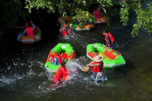 登上皮筏艇,蕩漾在清澈的山泉水中,跟隨著時(shí)而平緩時(shí)而湍急的河流,感受涼爽和激情的碰撞。