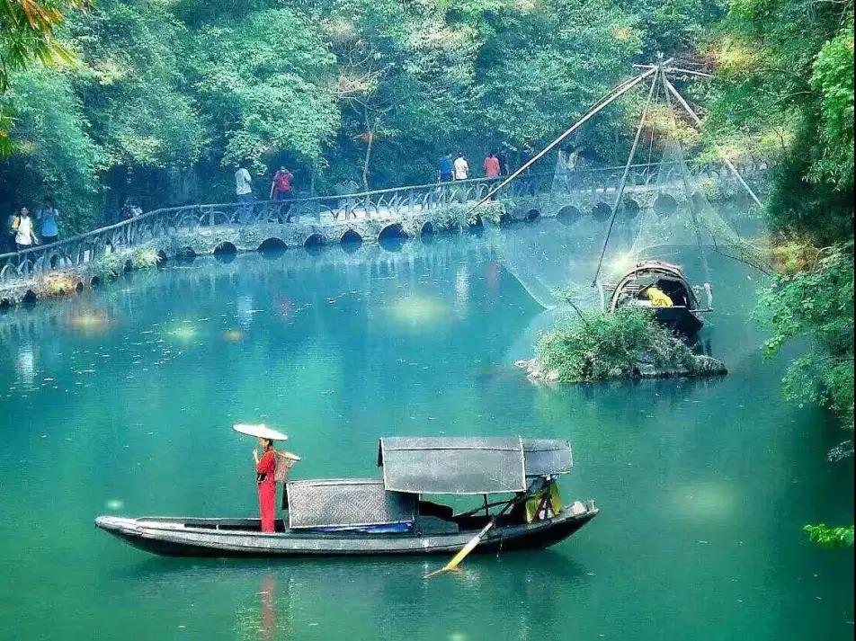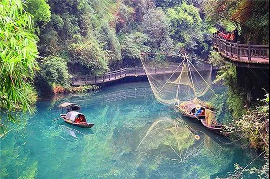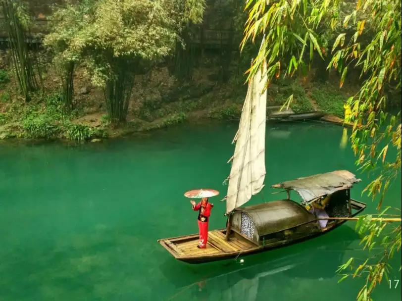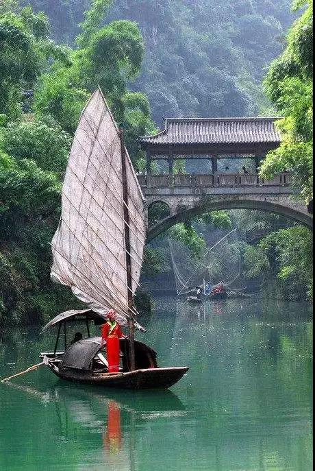 【三峽人家風景區】依山傍水,風情如畫:傳統的三峽吊腳樓點綴于山水之間,久違的古帆船、烏篷船安靜地泊在三峽人家門前,溪邊少女揮著棒槌在清洗衣服,江面上悠然的漁家在撒網打魚……千百年來流傳不衰的各種習俗風情體現著峽江人民的質樸好客。